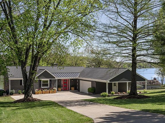This home sits quietly in a wide cove just off the main channel of Old Hickory Lake - a spot where mornings begin with soft light through east-facing windows, and calm water sets the tone for the day. Thoughtfully renovated, this single-level brick ranch now feels clean-lined and modern while staying connected to its setting. The kitchen was designed with intention—ample storage, sleek cabinetry, and tile that echoes the lake. Ceilings are high, windows expansive, and the view is part of the experience from nearly every room. There are 3 bedrooms and 2 bathrooms, including a primary suite with a modern bath and heated floors, ideal for chilly mornings. A fireplace anchors the main living area, adding warmth to the open layout. Custom built-ins bring both character and function, and the space flows easily - open, yet with spots to gather or retreat. A large covered deck stretches across the back of the home, accessible from the living room, dining area, and primary suite. It’s perfect for grilling, relaxing, or just watching the lake. The gently sloping backyard leads to approx. 75 feet of shoreline and a dock ready for your boat. Whether it’s paddling, wakeboarding, or a sunset cruise, access is just steps away. Dinner by boat? Sam’s at Blue Turtle Bay, AweDaddy’s at Gallatin Marina, or Scoreboard at Cedar Creek are all within a short boat ride. A two-car garage offers extra storage, and a carport provides bonus parking, so you can leave cars parked since your favorite way to get around might just be by water. This is a home for fishing off the dock, paddling and jet-skiing in the cove, and spending unhurried weekends on the lake. Comfortable and well-appointed, it’s a place that naturally fits the rhythm of lake life. (The house is not in a flood-zone and should not require flood insurance - to be verified by buyer)
