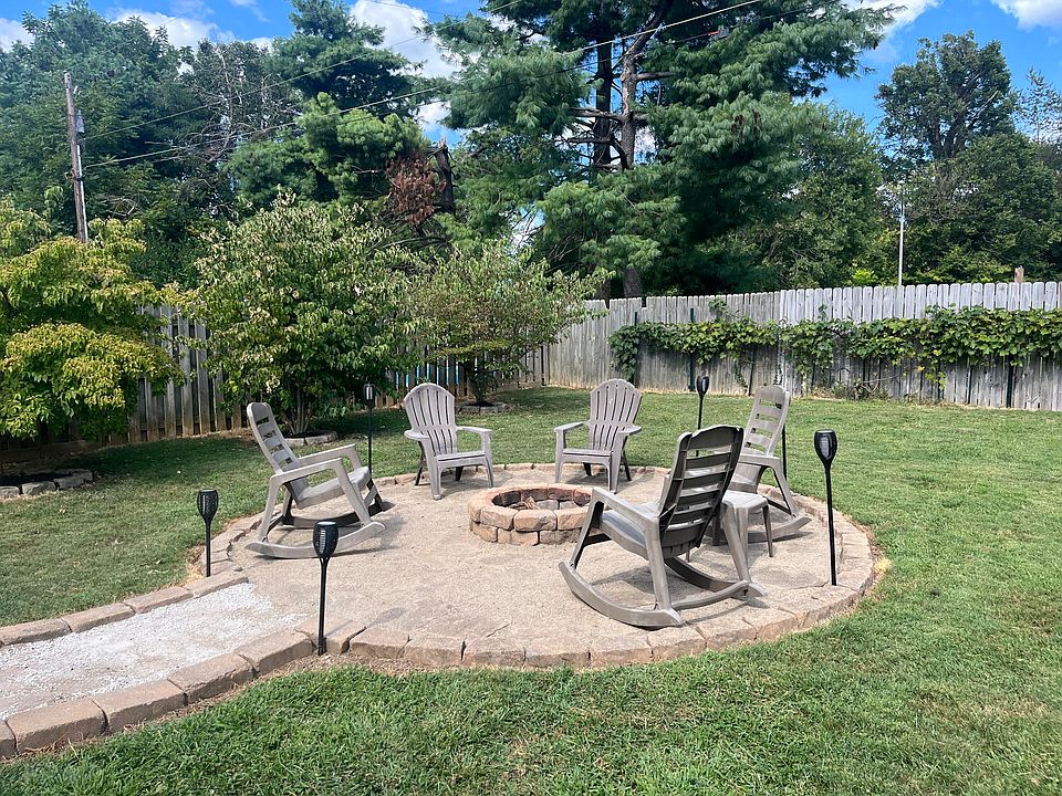 Hot tubFire pitPrivacy fenceTwo storage shedsBuilt in shelvesOversized two car garageCozy backyard