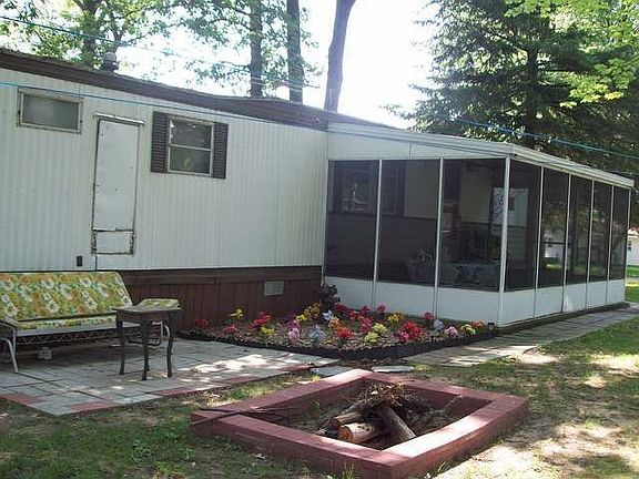 Two bedroom one bath sinlge wide mobile home. Well cared for. Move in condition. Large screened porch. Shade trees perfectly spaced for hammock. Two sheds are included. Land contract terms possible. Furniture is negotiable. Perfect for year round living or summer get away.