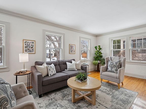Welcome home to this idyllic tree lined quiet street, just a short walk to Minnehaha Creek and Parkway! Lovingly cared for and maintained for the past 33 years, the sellers have invested in the home and neighborhood. New concrete steps and walkways in 2020 lead through gorgeous landscaping to this charming Two Story home. The home features original hardwood floors, crown molding and classic coved archways, along with two brick fireplaces. Sunny southern exposure and walls of windows lead to amazing natural light throughout the home! Expansive entertaining spaces with large main level family room, large dining room, sunroom with glass doors that allow in a ton of natural light and lead out to the beautiful deck and outdoor spaces. Additional family room, workshop and office space in the lower level. FIELD landscaping designed Xeriscape yard and fully fenced with ornamental iron! New 2 car garage in 2015!