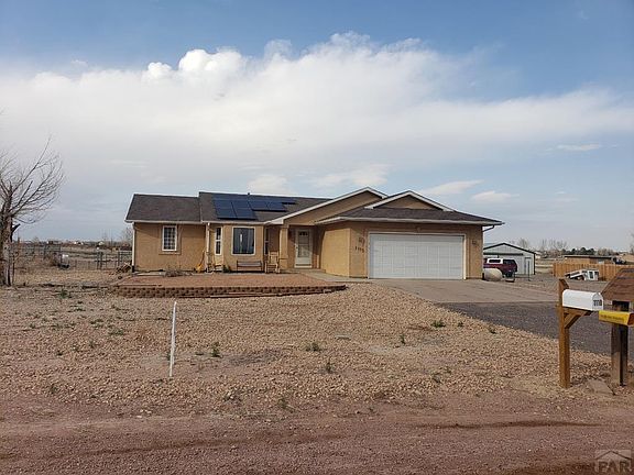 Acreage property near the Reservoir entrance and Equestrian. Nice home with lots of great features located in a desirable area of Pueblo West. Large walk in living room with vaulted ceilings that you can access the dining room and nice kitchen with lots of cabinetry. The dining room is accessible to the back patio. The large master bedroom has it's own master bathroom and walk in closet. Kitchen has a newer stainless refrigerator and there is lots of cabinetry for items. The large basement is an open canvas for your design. A bedroom is currently finished along with an unfinished closet and bathroom (shower pan, vanity and other supplies are there to complete). There is a dry bar that is currently there, 2 additional storage rooms and there can be a large family room to complete for additional finished living space. The backyard is fenced around part of the yard with a chain link fence, the lot size is further than the fence. This home sits on 1.24 acres. The shed is included. This home has solar and is NET metering (will be paid at closing) so you may enjoy savings in the monthly electricity costs. Home is very accessible from McCulloch Blvd and is minutes away from the nearest convenient store. Schedule your personal showing today! This home won't last long!!