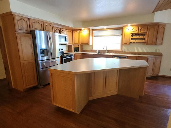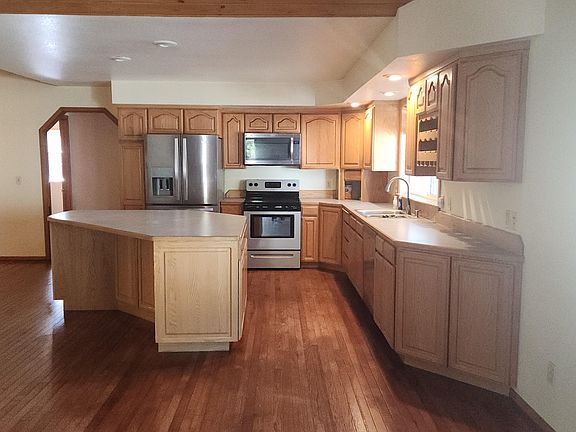 Updated 3,256 sq ft home on 1.55 acres. Located just out of town. A circular drive leads up to this beautiful home. Hickory hardwood floors throughout with open floor plan and vaulted ceilings, Kitchen Island,4with expansive counter space. A total of 4bdrms/3baths with primary suite on the main level, separate dining rm, large laundry rm on the main level. Finished basement with huge rec rm & wet bar and 2 bedrooms 1 bath. French doors lead out to the lower patio and yard. There is a cement pad where the hot tub used to be. On demand water heater. Nice deck on the front and side of the house. Large 3 car garage/shop. It's all here!