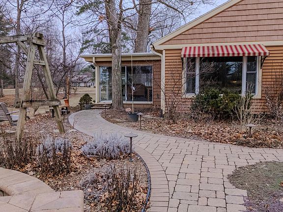 Nestled in the serene landscape of Shady Hills, this stunning 3,634 sq. ft. home is designed for both relaxation and entertaining. With picturesque views in every direction including the neighboring Frank Lloyd Wright home just beyond a scenic ravine this property offers a perfect blend of nature and sophistication. Step into the inviting foyer, where a picture window and a row of closets provide both charm and function. The expansive great room features a newly updated stacked-stone gas fireplace, creating a warm and welcoming ambiance. Just around the corner, the beautifully designed kitchen boasts Corian countertops, newer appliances, a breakfast bar with a prep sink ideal for morning coffee and a large pantry with dual refrigerator space. The adjacent dining area, with floor-to-ceiling picture windows, is perfect for hosting guests while enjoying the beauty of the outdoors. A true highlight of this home is the 20x14 heated and cooled enclosed patio, featuring wall-to-wall sliding doors perfect for watching the sunset or enjoying nature year-round. The adjacent family room, with wood burning fireplace and access to the backyard, provides even more space to unwind. The primary suite is a private retreat, offering an office area, a spacious walk-in closet, and a beautifully updated en-suite bath with heated tile floors, dual sinks, and a walk-in shower. The additional bedrooms are generously sized with ample closet space, and the two guest bathrooms have been tastefully updated with modern finishes. Outdoors, the professionally landscaped backyard oasis includes a paver stone walkway leading to a circular gas firepit with built-in seating, raised garden beds, an arbor with raspberry vines, and lush plantings that provide beauty year-round. The heated 4.5-car garage offers plenty of space for vehicles, hobbies, and storage. From the well-designed interior to the stunning outdoor spaces, this home is a rare gem offering comfort, style, and tranquility. Don’t miss your opportunity to make this peaceful retreat your own!