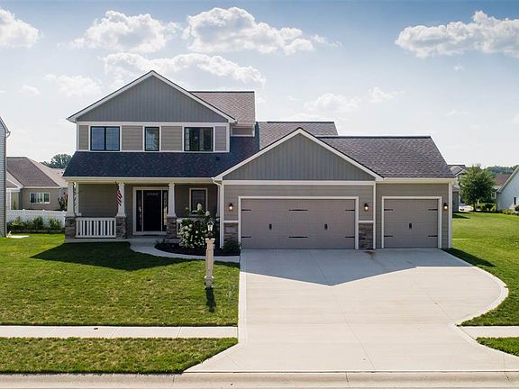 Why build when you can buy this existing 4BR home built in 2014 for $259,900?! The 2-story has a master bedroom en suite on the main floor. Glass door standup shower. Double vanity sinks. Three bedrooms up, plus a den/loft room. There's a large unfinished full daylight basement. You can easily finish it and add another 1000 square feet of living space! It's also plumbed and ready to go for a half bath. Back upstairs, the kitchen and living room have an open concept. All the stainless steel appliances stay. Granite counter tops! 9-foot ceilings on the main floor. From the dining area, there's a sliding patio door that leads to a 2nd story wood deck. The washer and dryer are negotiable with a strong offer. Nice sized 3-car garage! Great attic storage. Sycamore Lakes is conveniently located near 69, groceries, and the SW YMCA!