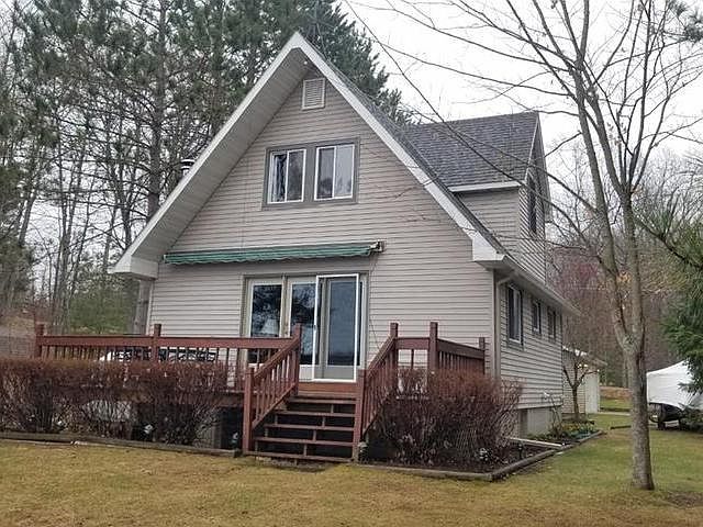 Get ready for your summer of fun with this cute chalet on Gray Lake. Level lot to the water with a great view of the lake. Gray Lake is a nice peaceful and quiet no wake lake offering a great place to fish, canoe, paddle board or enjoy a nice leisurely happy hour pontoon ride. The house has been well cared for and is in good shape. Detached 2 car garage for some extra storage, large lakeside deck, fire pit and a sun setter power awning. House is an easy jump off US 10 and will come almost fully furnished. All listing information/measurements are approx.