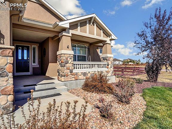 This home is the true definition of Immaculate! Truly one of kind. This beautiful ranch-style home is located in the desirable Falcon Highlands neighborhood which includes RV parking. With 5 bedrooms, 3.5 bathrooms, and a half acre lot, it offers plenty of space for a growing family or those who enjoy hosting guests. As you enter the home, you'll be greeted by luxury vinyl flooring that runs throughout the entire home (each & every room), adding a touch of elegance and easy maintenance. The spacious kitchen is a highlight, featuring upgraded stainless steel appliances, an island for additional seating and counter space, a pantry for storage convenience, and a breakfast area where you can enjoy casual meals. For more formal occasions, there is a separate dining room with a walkout to the private backyard, allowing for seamless indoor-outdoor entertaining. The center point of the home, the open living room boasts vaulted ceilings, a gas fireplace, built-in speakers, all creating a cozy and inviting atmosphere. The main level, hosts three sizable bedrooms, The first right off the entrance doubles as the perfect office with attached bathroom. The primary bedroom is accompanied by a luxurious five-piece en-suite bathroom featuring a garden tub and a walk-in closet, providing a private sanctuary within the home.The finished basement adds even more living space to the property, offering two additional bedrooms and another full bathroom. The basement also features a huge family room, complete with a projector for movie nights and a wet bar for convenience. Situated on a large corner lot, the property provides ample outdoor space for various activities. The enclosed backyard features a covered porch, pergola with lighting, storage shed and private basketball hoop. Overall, this home offers a desirable blend of space, functionality and style, making it an ideal choice for those seeking a comfortable and luxurious living experience, conveniently near shopping and entertainment