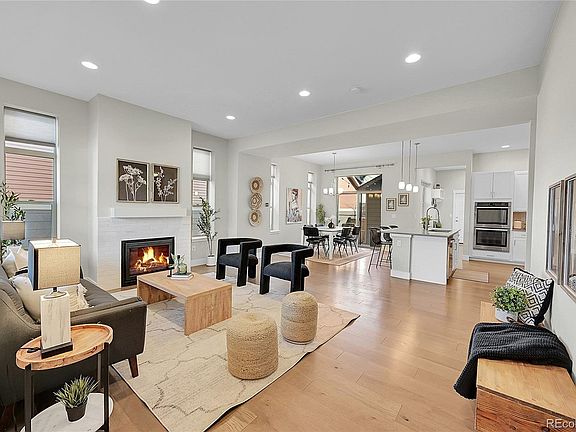 Impeccably maintained 4-bedroom, 4-bathroom, 2-story home, offering an impressive blend of style and functionality. Boasting 10-foot ceilings on the main floor, an open floor plan, and an attached 2-car garage, this home is designed to accommodate modern living with ease. The heart of the home is the gourmet kitchen, a chef’s dream. Featuring elegant quartz countertops, upgraded cabinetry with dovetail soft-close drawers, and top-of-the-line stainless steel appliances, including double ovens and a sleek flat-top gas range. An upgraded sink, a generous kitchen island, and a cozy fireplace add to the charm, creating the perfect space for entertaining or relaxing. The main level also includes a stylish powder room and beautiful engineered wood flooring that flows throughout. Upstairs, you’ll find the spacious master suite, complete with a large walk-in closet and a luxurious ensuite bath featuring dual sinks, upgraded tile, and a separate shower. Two additional bedrooms, a second bathroom with a separate toilet and shower, and a conveniently located laundry room round out the upper floor, providing both comfort and convenience. The fully finished basement expands your living options, with a versatile second living area, an additional bedroom, and a full bathroom. Whether used as a guest suite, home office, or media room, this space adapts to your needs. Situated in a vibrant community near the Stanley Marketplace, Bluff Lake Nature Center, Anchutz Medical Center, Children’s Hospital, and essential shopping, this home offers easy access to I-70, I-225, and Denver International Airport (DIA). Commuting and exploring the local area couldn’t be more convenient. With professionally selected modern design elements throughout, including upgraded tile, quartz countertops, and high-end finishes, this home offers a perfect balance of luxury and practicality. Don't miss the opportunity to call this exceptional property yours!