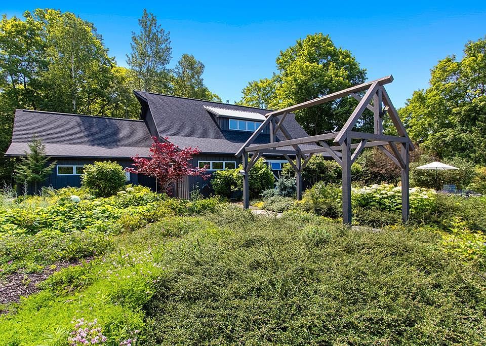 Stunning offering on 20+ acres of meadow, garden & forest . A rolling driveway leads past a meandering Door County stone fence, and that's where you'll find this lovely custom home. The home blends sleek, clean lines of contemporary design with 28 ft ceilings, newly-refurbished hardwood floors and walls of windows that allow for ample natural light and peaceful views of prairie, gardens & forest. The open concept (with a gallery feel) plus deck, patio and lush gardens are simply ideal for entertaining. A large office doubles as a laundry room, and the primary suite offers a large walk-in closet and luxurious bath. A full basement offers ample storage, hobby and workshop areas. Minutes from downtown, but very private. A must-see property.