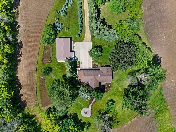 The outdoor spaces are equally impressive, with a front patio, a back paver patio, and a separate bonfire area. The property is surrounded by beautifully landscaped perennial gardens and private tree-lined acreage, offering plenty of wildlife and areas to explore. Ample garage space includes an oversized attached 2-car garage, fully insulated and sheet-rocked, along with a detached 30'x45' outbuilding perfect for storage or hobbies. Tillable land and room for horses/livestock. Great potential for business set up with flexible zoning or enjoy as a conveniently located acreage property.