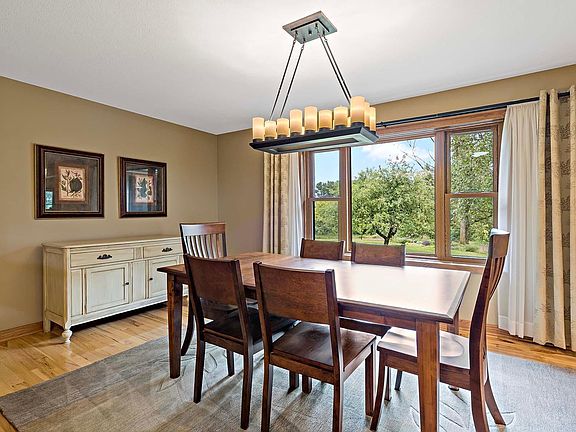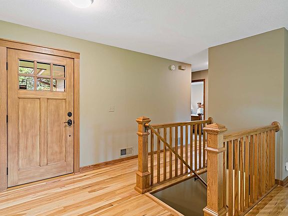 This beautifully maintained property, lovingly cared for by the original owners, sits on a private 10-acre parcel and boasts numerous recent updates and improvements. The inviting main level has been professionally remodeled with a garage expansion and a spacious laundry/mudroom addition. The kitchen remodel features Maple cabinets, granite countertops, an L-shaped peninsula with a soapstone top, a tiled backsplash, and stainless-steel appliances. Also on the main level are 3 bedrooms, an updated full bath, Hickory hardwood floors, paneled doors, plus the dining room and a welcoming living room with a gas stove, vaulted wood ceiling, large bright windows, and a walkout door leading to the two-tier deck. The walkout lower level features a spacious family room with a wet bar and gas fireplace, as well as a large 4th bedroom and a recently updated ¾ bathroom.