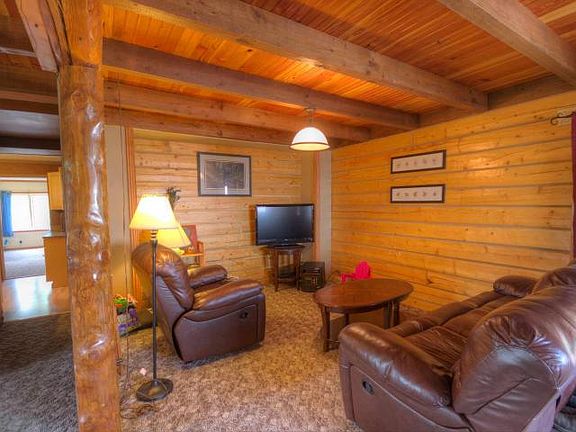 A beautiful log home located just outside of Palmer. The property is large and unrestricted which means if you want horses you can have horses. Also there is a 3 car detached garage/shop.