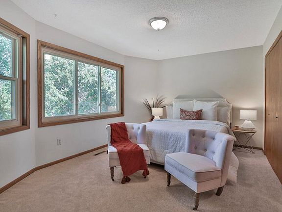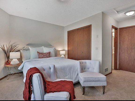 Two story, specious high ceiling walkout twin home on a cul-de-sac, backs up to Jonathan walking paths, backyard patio, large kitchen, 3 bedrooms on the upper level, main bedroom has a 3/4 attached bath. Property has a large garage. Great location with easy access to 212, shopping, Super Target and restaurants. Full size washer and dryer in unit.