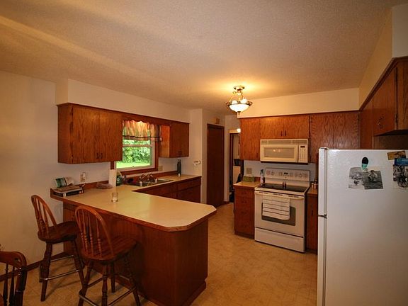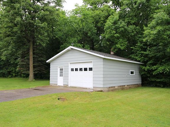 Spectacular setting on 5.42 wooded acres with 5+ garage stalls! This spacious rambler features three same floor bedrooms plus the option for a fourth in the lower level with the addition of an egress window, open kitchen and dining area, lots of natural light in the living room, and main floor laundry! The exterior features a nice deck off the front of the home- south facing, steel siding, a newer roof, new vinyl windows, and new front entry door. Lots of garage/storage space with a two stall attached and heated garage, an additional detached garage/shop, and a 20'x30' detached garage/cold storage. Enjoy the spacious yard with room to roam, and a large garden plot for you to grow your favorite veggies or flowers!