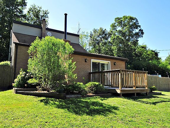 UNIQUE MOVE IN READY COLONIAL WITH DETACHED GARAGE! Spacious living room, eat-in kitchen with plenty of cabinet space, family room w/ exposed brick, enclosed glass porch w/ wood stove, main level bedroom & full bath with laundry area, upper level with 2 large bedrooms & half bath, rear deck, and detached garage!