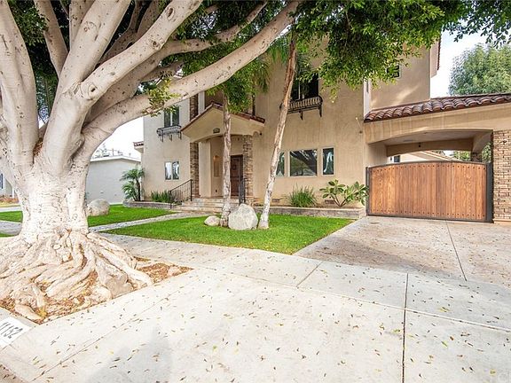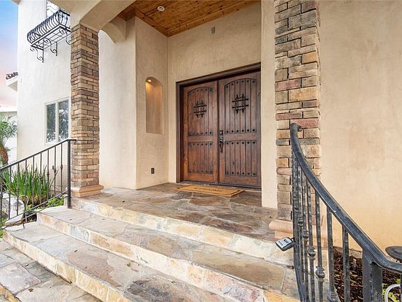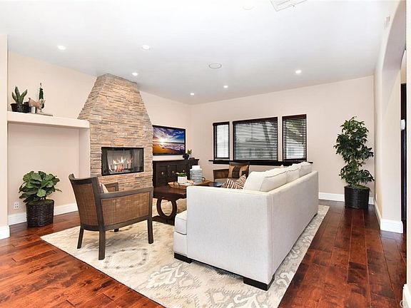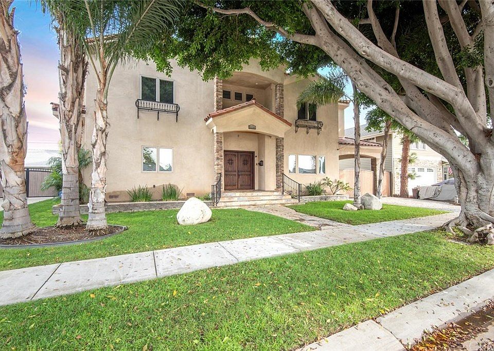 Custom built Estate with 4 Bedrooms and 4 baths with 2nd floor Bonus room or optional 5th bedroom, One bedroom down stairs Plus additional office/Den first floor with direct access to the backyard. HUGE Shade tree guards the large custom entry wood doors to a high ceiling entryway with sweeping staircase. Open floor plan, living room with a fireplace, Gourmet kitchen features large island with 6 burner gas cook-top and large range hood, granite countertops, stainless steel appliances, Huge double size refrigerator and walk-in pantry with easy access to side yard carport and view to the huge backyard and pool. Dining room with plumbing for wet bar, Den, and inside laundry area. Master Bedroom features gas fireplace and walk-in closet. Master bath with separate shower and tub, and dual vanity and access to rear balcony. Backyard has beautiful hardscape with planters that surround the large salt-water pool. Long gated driveway leads to the detached 2 car garage that has a ¾ pool bath attached. Potential boat, trailer parking behind the gated driveway. Other features include dual pane windows, wood floors, central ac/heat, inside laundry, and recessed lights. Award Winning Los Alamitos School District.