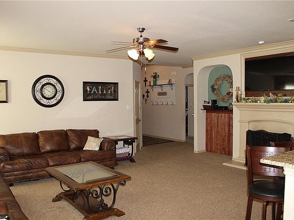 Great move in ready home features an open floorpan. Beautiful flagstone walkway welcomes you to the home. Granite counters in big kitchen with island. Lots of cabinets and counter space with SS appliances. Large utility room and pantry off the kitchen. Opens to the family room with wood burning fireplace. Wired for flat screen TV. Split bedrooms for privacy. Very nice sized bedrooms. Nice neutral colors throughout. Community features a playground, pool, and hike and bike trails in Dorado Ranch. This wonderful home will not last long. Very conveniently located near Alliance shopping. Children in this neighborhood go to the new Eaton High School in highly acclaimed Northwest ISD.