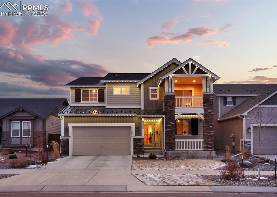 Welcome to this beautiful home in North Fork at Briargate, where the views of Pikes Peak are amazing! This 4 bed, 4 bath, and 3 car garage home is fully loaded with upgrades galore. As you walk in the front door, you will pass a private office with French doors, a half bath, and an open living/ dining/ kitchen perfect for entertaining. You will find the most amazing kitchen with Bosch appliances, white cabinets, a farmhouse sink, and a large pantry. This unique kitchen has an extension giving you a coffee/ beverage station. Off the dining room is a deck with views of Pikes Peak in one direction and views of open space in another direction. Walk down to the gorgeous backyard with beautiful irrigated landscaping and a stone patio on the lower level. Back upstairs, you will find four bedrooms- two are master suites and the other two are secondary bedrooms that share another bathroom. The laundry room is also located on this floor. This home has A/C, jellyfish lighting, a recirculating water system, whole house humidifier, wiring for surround sound and a basement that is ready to make your own. This home is truly dreamy!!!
