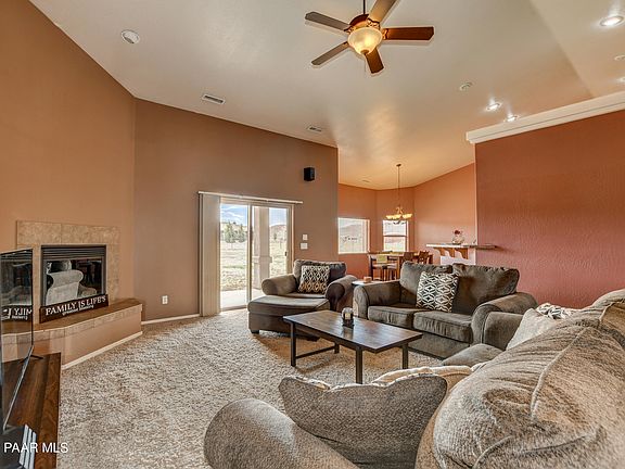 Beautiful Prescott Valley home w/ acreage in Prescott Prairie! Vaulted ceilings & tile flooring throughout give an open & airy vibe. Living room w/ patio access & gas fireplace great for entertaining. Formal dining room to enjoy all your favorite meals. Kitchen w/ bar seating, pantry, and tons of storage. Spacious owner's suite w/ private back yard access! A walk in shower & garden tub in the owner's suite to soak all your cares away. Split floor plan & additional bedrooms are great for guests, a hobby room, or even an in-home office! Laundry room w/ utility sink & storage. Huge fenced yard to make your own private oasis or dream horse property w/ panoramic mountain views! RV gate & oversized 3-car garage w/ plenty of room for all your toys! Come see this beautiful home before it's gone!