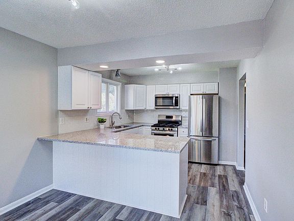Freshly remodeled. The kitchen is a real wow featuring new appliances, cabinets and counters. New flooring and lighting throughout. Interior is light and bright. Open main level floor plan. Deck overlooking a great flat yard. Super convenient location in Lakeville schools. This home is a GEM at the price point.