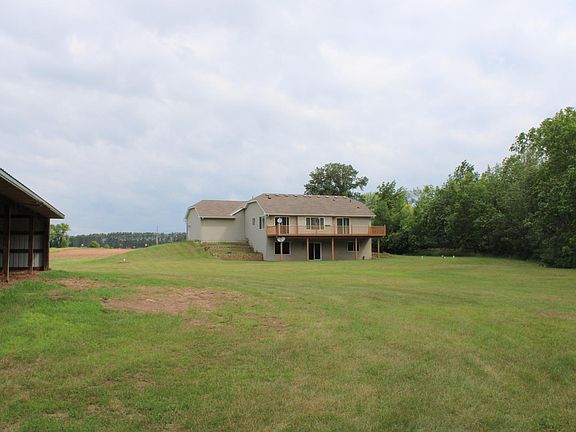 On the North Branch of Sunrise River 20 acres with a walk out rambler and 64 x 40 pole barn- concrete floor/220 amp electric drive through doors. With additional storage on both sides. Walkout basement to patio for entertaining your family and friends. Custom bar in family room and gas fireplace for those chilly days. - plenty of room to run to play yard games and watch the wild life from the patio or upper deck which is accessible from the dining area or owners suite. This property has endless opportunities to make it your own place to play and relax. This is a MUST SEE property.