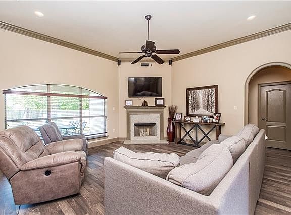 Cozy three bedroom home in small subdivision. This would make a great starter home! Open floor plan, large fenced back yard with rear yard access and a covered patio. No rear neighbors and easy access to interstate. Master bath features dual vanities, dual closets and a large tub. No carpet!