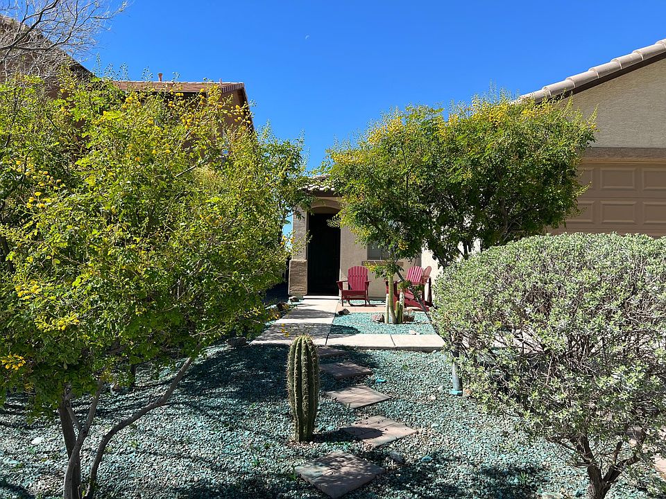 Gourmet kitchen, pantry in kitchen, RO system, washer and dryer in laundry room. Walk in closet in two of the bedrooms. Linen and coat closets. Two car garage. Interior recently painted. Fenced yard backs up to desert. Walking distance to A+ rated elementary school. High school, library, dining and shopping 5 minutes away. Renter is responsible for all utilities, pest control, landscaping and maintenance of house. Owner will be responsible for Home Owner Association fees.