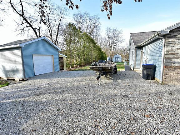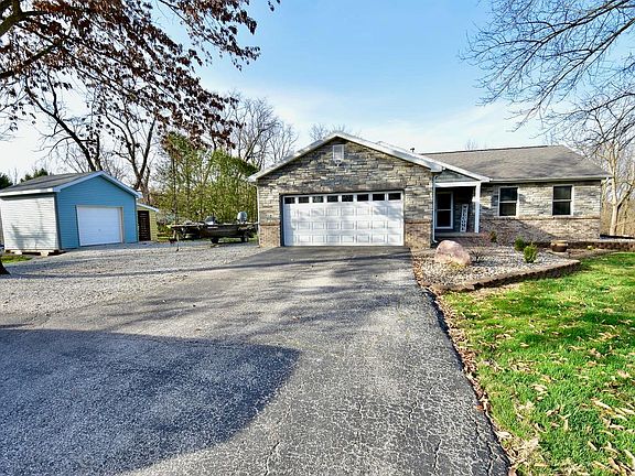 Beautifully maintained, quality brick and stone ranch with finished walk out partial basement featuring 2416 SF. Situated on 1.323 Acres this Split floor plan boasts 3 beds and 2 full baths, Massive open concept living, dining and kitchen with wood floors. Separate den space located off the main living room with additional living space in basement. 2 car attached garage and additional gravel drive with parking and 2 sheds. 2 decks to enjoy peaceful setting with mature trees while entertaining in the above ground pool! Enjoy low bills with a wood boiler for heat. New garage door last year. Property includes 2 parcels. Sold AS IS-inspections welcome.