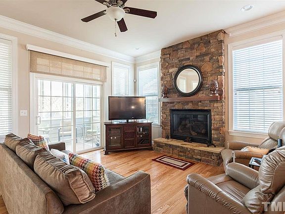 Beautiful former Parade of Homes entry! Open and flowing floor plan with 10' ceilings. Raised hearth FP in the family rm. Main lvl MBR plus main lvl guest rm with private bath. Large bonus rm on second lvl plus 3rd BR with private bath. Screened in porch overlooks the paver patio, perfect for fire pits! Elegant landscape lighting surrounds this home. Super convenient location to RTP and RDU! Be sure to add this home to your must see list!