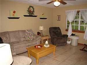 Lg family room leading to paver patio. Tile thru out except family room & bedrooms that have carpet. Large detached shop/garage(1800 sqft) Split bedroom plan, gas stove,refridgerator new in 2007. Roof new 2005. Dry lot with no pond. Circular drive, fenced yard with plenty of room for a pool.
