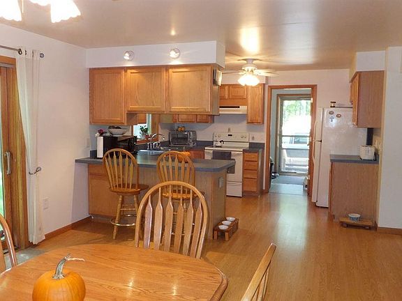 Country setting for this roomy family home. 2176 sq ft super insulated cape cod w/ 2x6 frame construction. Large kitchen/dining area for gathering around the table. Kitchen features breakfast bar & pantry. Living room has a cozy woodstove for those chilly winter nights. Main floor master BR w/ custom bathroom includes a soaking tub, shower, makeup seating & walk-in closet. Huge upstairs bedrooms & full split bath w/tub & shower. Lots of closets & attic storage. For the toys a 40x30 polebarn w/10 ft sidewalls, 2 power doors & 60 amp service. Home has efficient HW heating. Surrounded by maple hardwoods. A convenient drive to TC & close to Benzie schools. Call for an appointment.