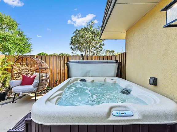 Welcome to this spacious 2-bedroom, 2.5-bath townhouse with 1236 sqft of living space in the desirable Village of Sandalwood Lakes. The home features an open floor plan with a kitchen island and cabinets perfect for meal prep and storage. Both bedrooms are upstairs, each with a private balcony and ample closet space. Hurricane impact sliding doors throughout the property!The inviting open patio comes complete with a hot tub, ideal for relaxing after a long day.Enjoy the community amenities, including basketball, bike/jogging paths, a clubhouse, community room, dog park, fitness trail, playground, pool, pickleball, and tennis courts.Don't miss the opportunity to call this charming townhouse your home!