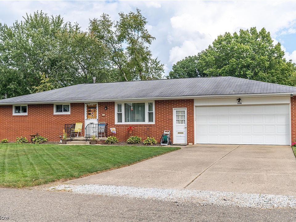 Discover the perfect blend of comfort and convenience. Nestled in a tranquil neighborhood, this charming all-brick 3-bedroom, 1.5-bath ranch is a true hidden gem. From the moment you step inside, you'll be captivated by its warm and welcoming ambiance. Inside, hardwood floors are waiting to be revealed beneath the bedroom and living room carpeting, adding timeless character to your home. The master bedroom features an ensuite half bath, a delightful touch of luxury for the new owner. The fully finished walkout basement offers boundless possibilities for providing ample room for recreation, hobbies, or even a home office. Step outside onto the backyard patio, perfect for outdoor gatherings and relaxation. This home boasts new vinyl windows August of 2023, ensuring both energy efficiency and a fresh modern look. The 3rd bedroom has been thoughtfully converted into a laundry room, allowing for seamless one-floor living but could be easily converted back to a 3rd bedroom. With the convenience of city utilities, this property simplifies daily life. Plus, a 2-car garage offers shelter for your vehicles and additional storage. Don't miss your chance to make this delightful ranch your own.