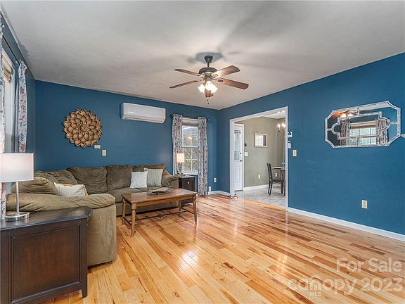 This Mini Farm is only 23 minutes from downtown Asheville you will find a comfortable farmhouse style home where you can live off the land. This updated and comfortable home has an extraordinary amount of gardening space- fruit trees and herbs- apple trees, fig, plum, peaches, artichokes, nectarine, garlic and rosemary- just to name a few. There are four rooms that can be used for sleeping quarters with closets even though the home is on a two-bedroom septic. There are two bedrooms and one bathroom downstairs and two bedrooms and one bathroom upstairs. Home has fresh paint, new heating and air mini splits, and updated kitchen. All appliances including washer and drier convey. There's a large 22X23 detached garage with power. Chicken coop is extraordinary!