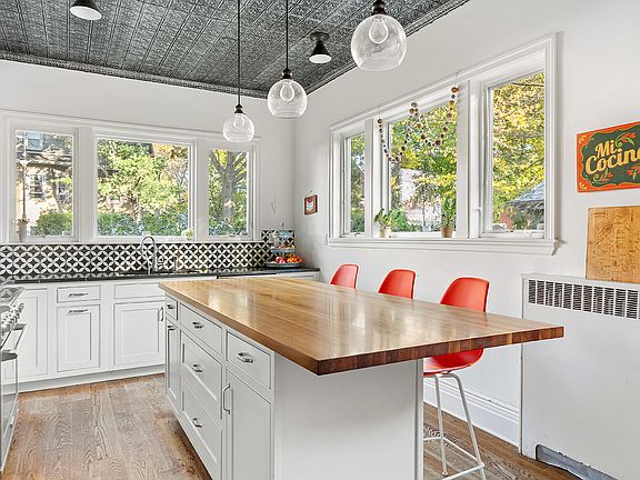 Elegant, unique, and spacious says it all! Move right into this spacious and bright home and detached two-floor studio that's been lovingly restored and created by the current owners. Whether you are working/schooling from home or just hosting, this home offers several options for everyone to have their own special work, play and outdoor space! The parlor floor thoughtfully unfolds across a living room, den, dining room and family room complete with three sets of pocket doors that allow privacy and quiet. Sit and read near the wood-burning fireplace, enjoy a movie in the TV nook or catch up with family and friends in the front living room with two exposures. Open the pocket doors and enjoy the views and warmth of the fireplace from the dining room. A powder room on the first floor is usually a practical amenity to have but rarely, are they as beautiful as this one! Renovated with Moroccan, hand chiseled tiles, and a built-in vanity from a local millworker. Your guests will marvel at this little piece of art! The beautiful, light-filled kitchen features high ceilings, Spanish tiles, modern stainless steel appliances, great counter/prep space, and two exposures! Cozy up around the walnut island for intimate dinners and fun conversations. The large pantry is every homeowners dream! The kitchen conveniently opens up to the backyard that has been made into a magical and private entertainer's oasis. The backyard has ipe decking and the two story, four-car garage has been transformed by a local artist into a unique multi-purpose studio live/work cottage. The cottage boasts polished cement floors, exposed beams, skylights, independent heating and cooling, a full bathroom, a beautiful loft bedroom with high ceilings and skylights and sliding doors that open up to the backyard for additional space. Host friends or events in this stunning multi-purpose space that is as functional as it is beautiful. The second floor offers a rare configuration of three bedrooms and two bathrooms. The primary suite has its very own deck for morning coffee, outdoor zoom meetings, daily yoga, a glass of wine after a long day or daydreaming! The bedroom has great walk-in closet space, four windows, and an en suite bathroom with gorgeous Anne Sacks tiles. Two additional bedrooms and a light-filled open room provide plenty of living options and potential configurations. The third floor has two bedrooms, a full bathroom, and a home office complete with a kitchenette. The largest bedroom is part of the turret of the house and has charm and views. The large, fenced side yard has loads of privacy from the pine trees that are planted along the side of the yard. Park two cars in your driveway and never think about alternate side parking again! Located close to Prospect Park and Cortelyou Road with several dining, shopping, and transportation options. For those who want plenty of space and want to feel like they're in the country without leaving the city, this is the perfect home!