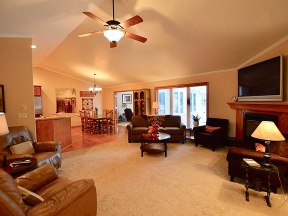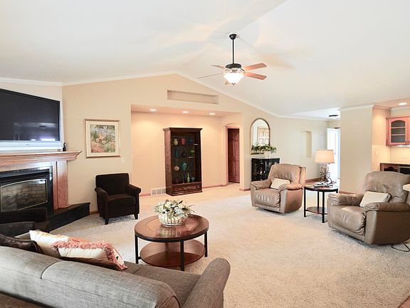 Spacious twin home featuring an open floor concept. Wonderful kitchen with cherry cabinetry, large sit up breakfast bar, movable island (stays) and stainless appliances. French doors leading to a bright and cheery 4 season room that flows on to a maintenance free deck overlooking the back yard. Living room has vaulted ceiling, tv mounted above the fireplace (stays), surround sound and custom bar area. Perfect for entertaining. Nicely finished lower level with pool table (stays) and shop area.
