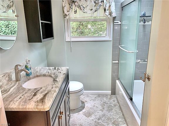 Make this one Home! Check out the many updates on this large 5-Bedroom, 2 full Bath, 2006 sq ft Colonial: NEWER Roof ('09), Furnace & Air Conditioning ('12), luxury vinyl flooring in two 2nd floor bedrooms ('19) and a modern fully remodeled main bathroom ('15). Windows have been replaced over the years & glass block installed in basement ('00-'17). Natural woodwork throughout. Living Room has lots of natural light and a closet with a hidden staircase that may be opened up to the 2nd floor landing. Dining room has a built-in-buffet & chandelier. An owners suite is on the main floor with a full connecting bathroom with walk-in shower. Owner's bedroom could also be used as an office, craft room or in-law suite with its built-in desk & storage cabinets. The farmhouse kitchen has all NEW stainless steel appliances ('17). Main bathroom was completely remodeled ('19) with beautiful tile surrounding the tub and shower, gray cabinetry and chrome fixtures. Attic has been converted into a long bedroom with extra space for a sitting area or study space. Plenty of paved parking as well as a large 2-Car Garage with a big work bench sits on a lush green lawn. Tall wood fencing ('15), on the north & east sides & chain-linked fence along the back, encompass the back yard for privacy. Host relaxing evenings in the screened-in patio. Super convenient to hop on the Kenmore Leg (You'll love this!), close to downtown Akron & 5 minutes from new Amazon Head Quarters. 1-Year Home Warranty included.
