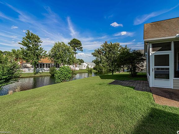 This home, located in the Lakes @ Plantation Pines is a lovely home located on a lake, with a beautiful view from the back of the home.There are granite countertops in the kitchen, new stainless appliances, breakfast nook, brand new laminate floors in main living area and master bedroom, screened porch and patio so you can sit and watch nature. The master bedroom has a conveniently located barn door to the master bath with a shower and linen closet. Living room has vaulted ceilings and two solar tubes to let in the natural light. The garage has much shelving and extra electrical outlets and could be used as a partial workshop. House is complete with hurricane shutters that crank from the inside of the home. Conveniently located to shopping, retail and dining opportunities. This is your opportunity to move to the beach and enjoy that laid back lifestyle. You will be glad you did!! Measurements are approximate and should be verified by buyer.