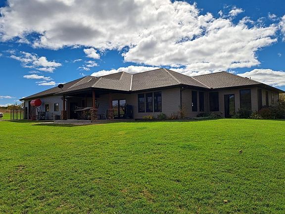 Custom home with complete country privacy on 10 acres! You'll love the beautiful winding driveway leading to your new fantastic one level home with MASSIVE 2500 SF attached garage/shop. Enjoy working on all of your toys in your finished steel-lined garage with drive-through insulated overhead doors, floor drains, in-floor heat, 1/2 bathroom, 220V for welding, 50 amp RV outlet, TV, hot/cold water and more! Then head into your open concept living space with beautiful alder and rustic maple cabinets and trim. Flooring is beautiful ceramic and LVT planks. Lots of cabinetry storage. Walk-in pantry is a storm shelter. LOOK at that incredible ceiling! Add your fireplace to the available hook-up for ambiance. Wander out to the front or back decks to enjoy your sanctuary and the abundant wildlife. Private master suite with walk-out private patio, walk-in closet, walk-in shower with instant hot water, and MASSIVE Jacuzzi tub with TV! Additional 10 acres with Custom Shop available!