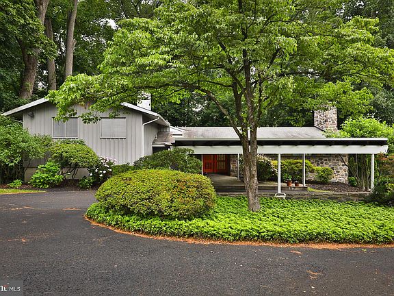 For those seeking the most private lifestyle and beautiful surroundings, welcome to this exquisite mid-century modern residence, located in desirable Rydal, Abington Township on .91 acres of private grounds. The circular driveway and carport greet you as you step onto a flagstone walk-way to the front door. A foyer with slate floor and coat closet leads into the vaulted ceiling living room with stone fireplace and dining area with original teak flooring, built-in shelving unit, closet and sliding glass doors to a lovely deck. The eat-in kitchen features a 4 burner electric cooktop plus a 2 burner gas cooktop, stainless sink, double wall oven, refrigerator, dishwasher, disposal and a mudroom/laundry room with skylights, powder room and an exterior door. The 2nd level features an enlarged primary bedroom with sitting area, primary bath with double vanity, stall shower and plenty of closet space and dressing area. There are 3 additional bedrooms with ample closet space, a clothes hamper under shelves, a 2nd full bath with double sinks and stall shower plus a 3rd full bath with tub/shower. The hall offers more closet space. The lower level family room with plenty of closets has sliding glass doors to a covered patio. The family room leads to 2 additional bedrooms/offices plus a full bath with tub/shower. This area has the potential for an au pair suite or in-law suite. A finished basement offers additional living space with even more closets, a utility room plus a storage room that leads to the outside. Gas hot air heat (3 zones), central air (2 zones) and gas hot water (domestic) heater. Located in the Award Winning Abington School District (Rydal Elementary), this property is within minutes of Penn State-Abington Campus, Abington-Jefferson Hospital, Holy Redeemer Hospital, Whole Foods, Trader Joe’s and quaint shops and restaurants in nearby Jenkintown. This property is a short distance from the Rydal Train Station with easy access to Center City Philadelphia. If you are looking for a home that perfectly balances the peace and quiet of a friendly neighborhood with the excitement of nearby amenities, this is the home for you. Move right in and start living your best life in this sought-after location!
