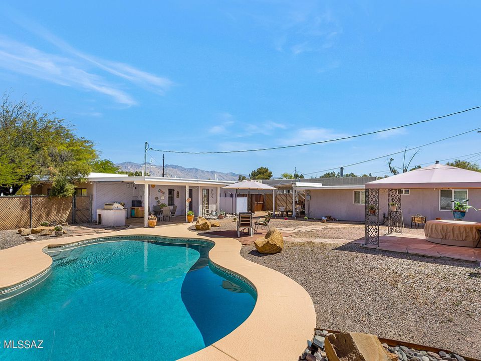 Updated home with Pebble Tec pool, hot tub & guest house! Perfectly located near Mountain Ave bike path. R2 zoning on .25 acre lot with room to build. Main house features updated kitchen and bathroom. Custom saguaro rib doors. Dining/Office can also be 3rd bedroom. Enjoy mountain views from the living room and front yard. Large backyard features pool, hot tub, covered patio, BBQ & shed/workshop. Guesthouse features updated kitchen, tile/glass block shower and separate bedroom from living room Ideal for students or income property. Come see today!