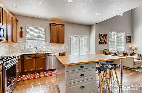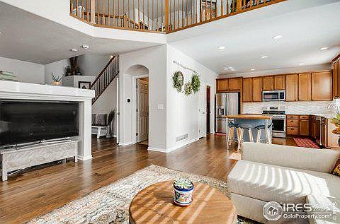 Discover this beautiful two-story home in Erie Commons. 4 bedrooms, 4 baths, office and loft! Kitchen has white Brazilian granite counters with flecks of red garnet-gorgeous! Check out all the new stuff-stainless steel appliances-2018, microwave and dishwasher-2017. Elegant hardwood floors on the main level-2018. New A/C-2020. New furnace-2020. New paint, carpet, blinds-2018. Private master suite plus two add'l bedrooms up. Delightful basement with big family room, guest bedroom and bath. 3 car-awesome garage! Built-in workshop, bike racks, storage for all your fun toys! Great neighborhood with parks, pool, playground. Close to Erie open space trails for hikes and rides. Walk to cool Downtown Erie-great restaurants,Tuesday/Thursday night Farmers Market. You'll love it here!