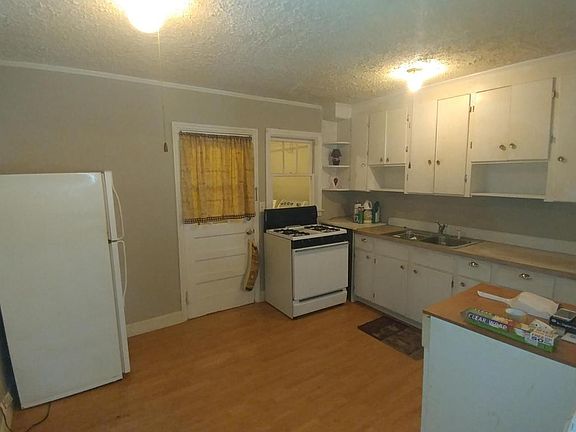 Cute as a button; Newer flooring ( and I do not know if there is hard wood underneath). All appliances convey ( washer, dryer and dishwasher included): Water heater needs replacing, no central air, but the window units keep the place nice and COLD! No repairs will be made by owner. A tree limb fell and bent a support railing on front porch but this should not be a big deal.
