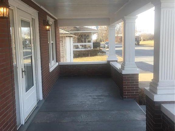 Solid brick colonial featuring covered front porch, large flat lot, detached garage, original wood floors, newer replacement windows, large eat in kitchen, full walk up attic, walk out basement, lots of storage.