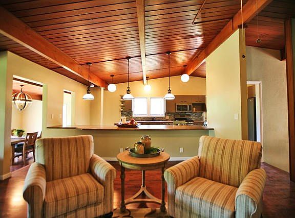 Piece of art, Mid-Century Modern. Durable cypress & brick exterior, marble foyer, spacious living room, kitchen and dining room. The bedrooms are on the entry level & the finished walkout basement below.