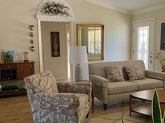 This popular Amarillo home is located in the Village of Sabal Chase, right in the heart of The Villages, close to Lake Miona Regional Recreation Center, Mallory Hill Country Club, and Lake Sumter Landing. The home is on an oversized lot and backs to a villa wall, providing space and privacy. This home has many enhancements, including beautiful and mature landscaping, an expanded enclosed residential lanai, and a screened enclosure. The home has neutral decor, is clean and well maintained. Bond is PAID.