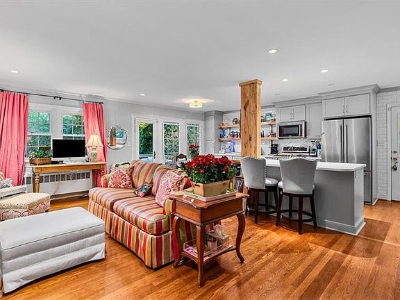 This charming mid-century cottage in Latham Park is just waiting for you! You will fall in love with the open floor plan and renovated kitchen. The kitchen features a large center island, coffee bar with beautiful open shelving, farmhouse sink, stainless steel appliances and much more. The fireside living room has windows front and back and opens to a huge deck (partially covered) and overlooks the backyard with a potting shed/storage building. Both main level bedrooms feature beamed ceilings and shiplap. The upstairs room can be a third bedroom with built-in twin beds and drawers. Lower level laundry room is perfect for additional storage. The wide covered front porch welcomes you and your guests and you will love the salvaged church gates that lead to the lush backyard. The attic is easily accessible for additional storage.