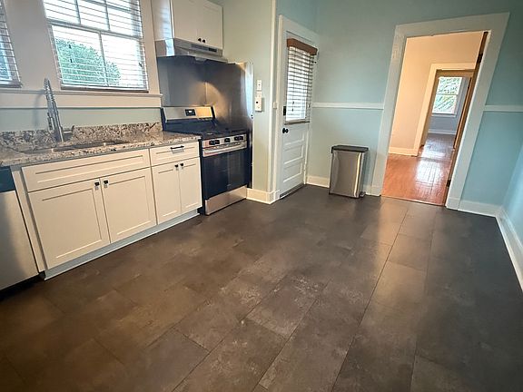 -Updated kitchen with brand new appliances, including a 5-burner gas stove and dishwasher, plus new flooring