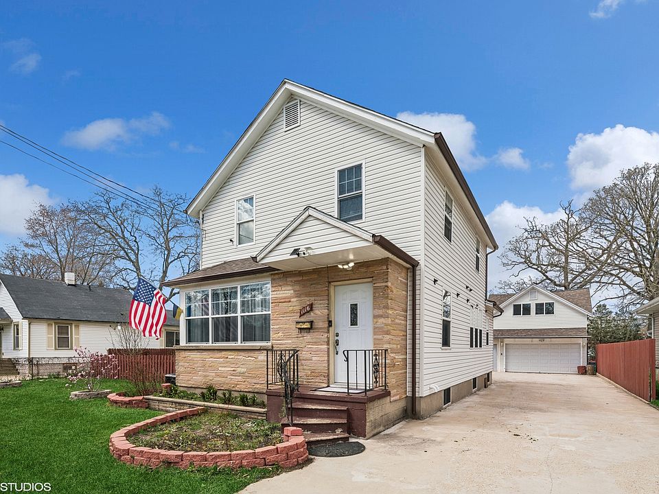 Captivating 2-story home with 3 bedrooms + 1 bedroom in the basement and 3 full and one half baths has been completely remodeled. Home features open floor plan with high ceilings and living/dining room combo, 2 bedroom upstairs and one on the main floor. Within the last 7 years, everything has been updated with new roof, siding, newer kitchen w/ all new appliances, marble counters, ceramic backsplash, breakfast bar and new marble baths. Also, are newer HVAC, electrical with can lighting, plumbing, windows and laminate flooring throughout. In addition to you will notice a few more added features including brand new electric panel, new paint on the 1st level, an added smart thermostat, electric car charging port in garage, motion control kitchen faucet, new upstairs shower floor. There's also newly installed solar panels that cuts your electrical bill in half! Current transferrable lease for solar panels are @ $83.08/month. The basement is finished with an extra bedroom, bath and extra storage. Chamberlain smart garage door opener, 12 garden plots. Home sits on a converted double lot into 1 LOT that includes a 2-story garage (bonus room) with concrete driveway, and there's a brick patio with fenced yard great for entertaining! Did I mention, low property taxes?