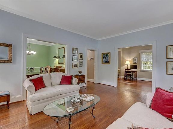 Incredible charm can be found throughout this Latham Park cottage. The perfect mix of older architectural details and quality features and newer updates in the kitchen and completely renovated upstairs bathroom. Fresh paint and attractive hardwood floors throughout. The living room has a fireplace and opens into the large formal dining room. Bright sunroom off the kitchen is a perfect place to enjoy coffee or a great book. The private deck and the inviting front porch provide great outdoor living space. Functional detached garage has extra storage or potential workshop areas. Additional living space on the main level and a bedroom with access to a full bath. The spacious primary bedroom has great closet space. The central location is convenient to great restaurants, neighborhood parks, exercise trails, shopping, and downtown Greensboro. This home is special!