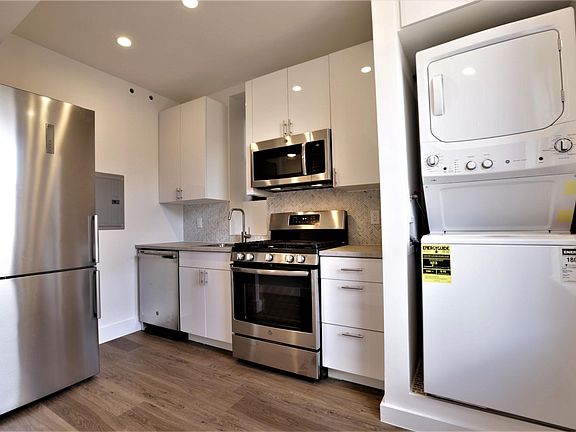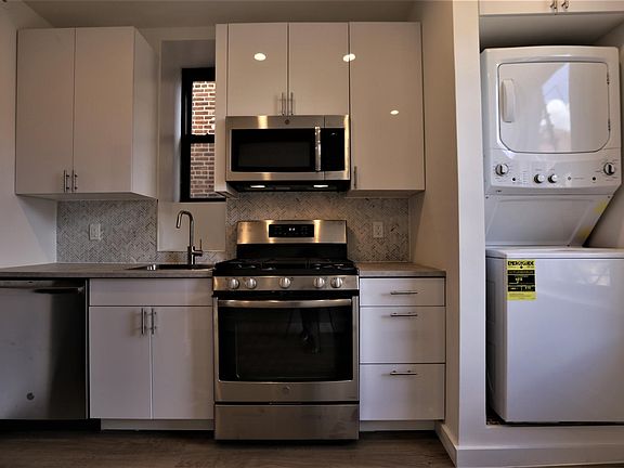 Welcome to your impeccably designed all new fully renovated luxury 2 bedroom, 1 full bathroom home perfect for student shares or anyone who enjoys having extra space. Located on popular Hudson Street in Hoboken, NJ this home is a commuter's dream. This bright and open space includes large windows with exposed brick walls throughout, brand new hardwood floors, adjustable rail lighting to suit your needs, and 'french sliding doors' bringing to your home a 'classic meets modern' aesthetic. Enjoy the fully equipped kitchen with custom cabinetry, stainless steel appliances, stylish herringbone backsplash, full range oven, dishwasher, and stackable washer dryer. Full bath designed using Calcutta gold marble and modern fixtures. The serene master suite has an expansive footprint, high ceilings, and faces Hudson Street. This beautiful home is conveniently located near shops, restaurants, NY Waterway Ferry and buses to Port Authority or PATH station. Broker fee equal to one month rent paid by tenant. Available June 1st only